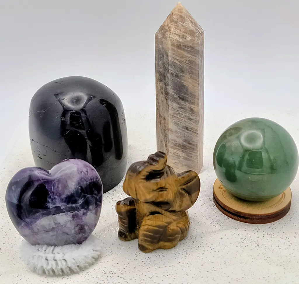 Each mystery crystal box is curated to match the theme the resonates with you the most. For example, crystals with specific properties like protection, self-love, anxiety, etc.