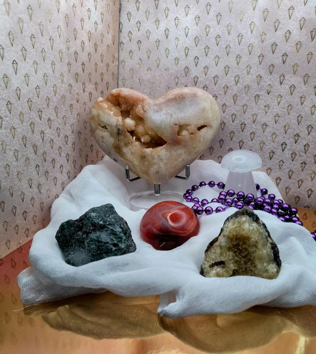Each mystery crystal box is curated to match the theme the resonates with you the most. For example, crystals with specific properties like protection, self-love, anxiety, etc.